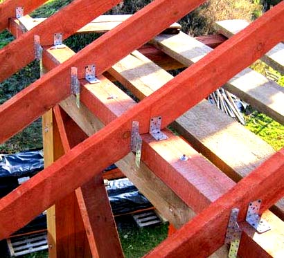 У наслонных стропил имеется опора не только со стороны мауэрлата, но и со стороны конькового прогона, поэтому они легко перекрывают небольшие пролёты.
