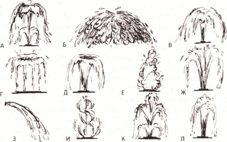 Варианты насадок для фонтанов различных форм
