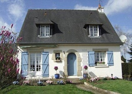 Палитра дома во французском стиле в Нормандии ближе к натуральным красно-коричневым гаммам, с добавлением серых, песочных, розовых оттенков.