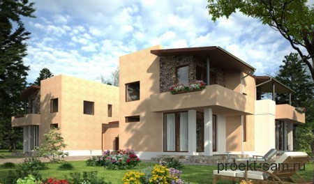 Двухэтажный проект дуплекса на 2 семьи и с гаражом