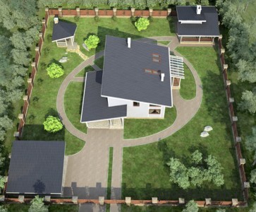 • фундамент выполнен из монолитной ж/б плиты. Наружные стены могут возводиться из кирпича или газобетона по желанию заказчика. Перекрытия также монолитные из железобетона. Кровельный материал – натуральная и битумная черепица;