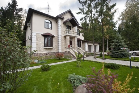 - Перед домом не сосредотачивается много растительности – почти вся она находится в саду.