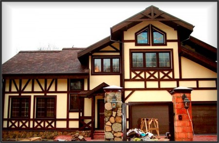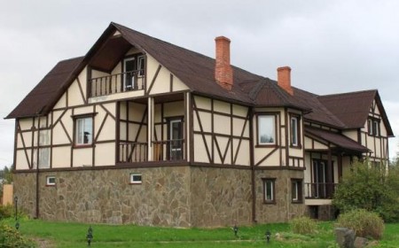 Немцы известны своей педантичностью и дисциплинированностью. Эти же черты передались их национальному стилю фахверк. Фасад в немецком стиле сделать просто, для этого не нужны специфические материалы, достаточно приколотить в определенном порядке несколько досок и выкрасить все в соответствующие цвета.