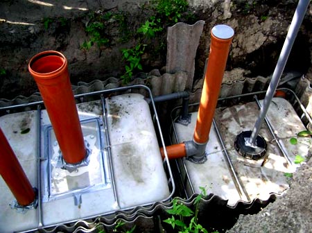 Устанавливают их изолированно, после чего подключают канализационную трубу, ведущую из дома (схема разводки труб для канализации в частном доме предложена в статье).