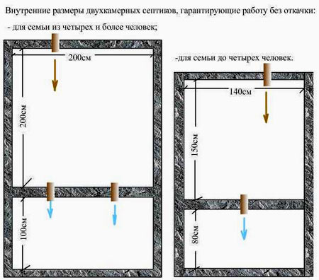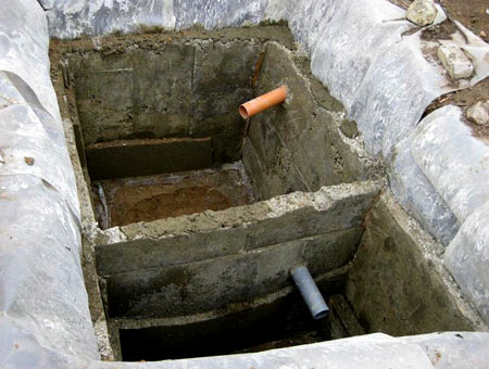 - Первая секция предназначена для сбора основной массы отходов твердого типа. В нее стоки текут из дома.