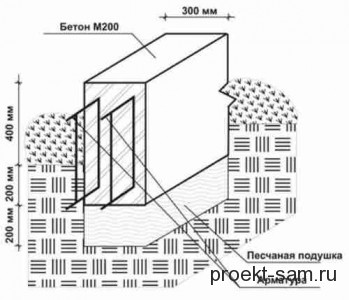 Второй вид менее затратный и легко возводимый. Потребуется создать подушку под монолит из песка или щебня толщиной до 30 см. Потом приступают к заливке железобетонного основания.