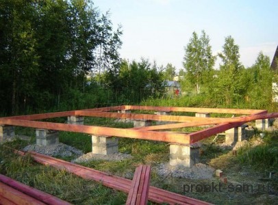 Дома из брусовой кладки можно строить на любых типах основания. Для небольшого строения для непостоянного проживания хватит на выбранном участке установить столбчатый вид.