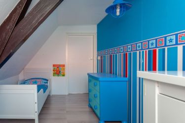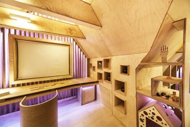 Детские комнаты тоже можно выдерживать в определённой стилистике. Но для них более важным является хорошее искусственное освещение в дополнение к недостающему естественному, и оптимальное распределение функциональных зон, справиться с которым помогает встроенная мебель.