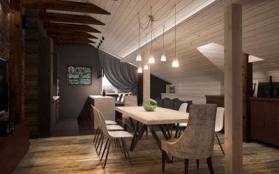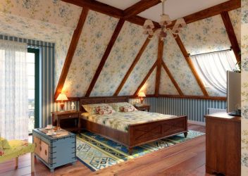 - Лофт отлично сочетается и с классикой, и с любыми этническими мотивами. Ну и конечно, в мансарде проще всего воплотить любое направление кантри: русской избы, скандинавского, французского или английского провинциального дома, альпийского шале.