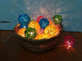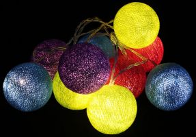 Обычную светодиодную гирлянду можно модернизировать. Например, такими разноцветными шарами из ниток.