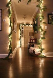 Гирлянда в прихожей – отличный вариант. Обычно в этом помещении нет окна. Дополнительный источник света, пусть даже декоративный, лишним не будет.
