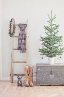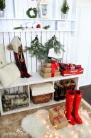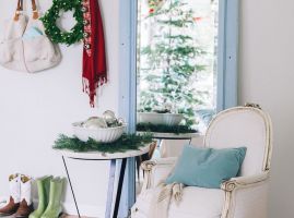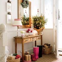 Для создания импровизированной новогодней инсталляции можно использовать вещи, которые хранятся в прихожей.