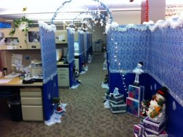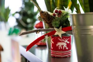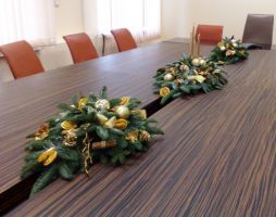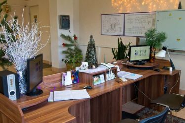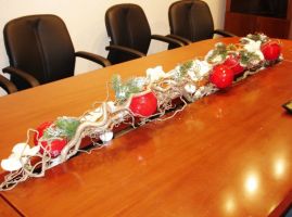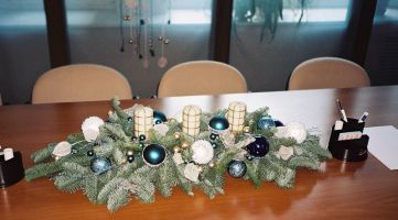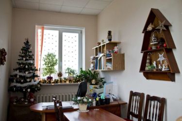 - Кабинет начальника следует оформлять более сдержанно. Достаточно ёлочки на столе, вазы с новогодними игрушками, гирлянды из еловых веток над дверью.