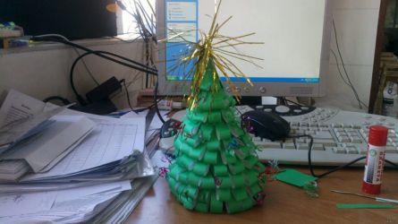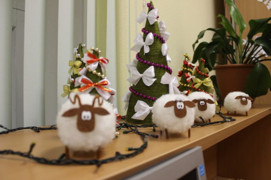 Главное правило – украшение офиса своими руками не должно мешать работе. Поэтому слишком увлекаться не стоит. Если места на столе мало, а офис рассчитан на несколько человек, то можно ограничиться общей ёлкой, подвесками на потолке.