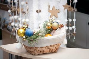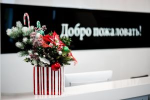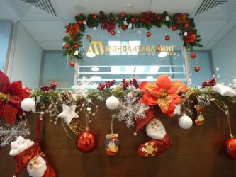 Есть понятие «деловой стиль», поэтому не надо превращать холл офиса в украшенный детский сад с бумажными снежинками, растяжками, дождиком под потолком. Декор должен быть сдержанным. На стойку можно поставить ёлочку или корзину с игрушками.