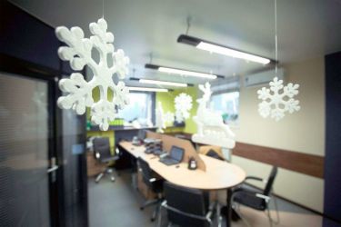 Украшать офис следует умеренно и сбалансированно, по возможности сохраняя основную концепцию дизайна помещений. Использовать лучше те украшения, которые можно легко закрепить и снять для того, чтобы убрать на хранение.