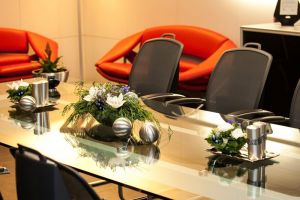 В крупных офисах есть отдельный кабинет для встречи с клиентами – переговорная. В этом помещении, как правило, нет ничего кроме большого стола и кресел. Здесь решают важные вопросы, подписывают контракты, ведут серьёзные деловые переговоры. Поэтому украшать этот кабинет надо максимально сдержанно.