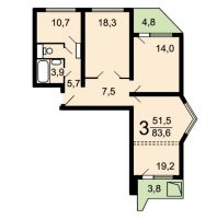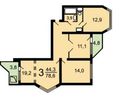 План 3-комнатной квартиры в таком доме: