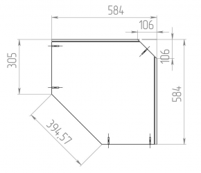 На чертеже показана прямоугольная трапеция. Соотношение сторон симметричное, глубина 330 мм. Наружная дверца наклонена на 45 градусов по отношению к стенам помещения.