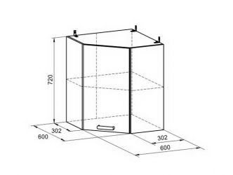 Угловые кухонные шкафы (навесные и напольные) – это элементы гарнитура нестандартной формы с большим внутренним объёмом. Могут использоваться для установки мойки, хранения посуды.