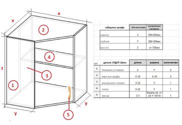Перед началом работ стоит разобрать популярные размеры и чертежи углового шкафа для кухни, изучить порядок сборки. Так получится сделать мебель своими руками с нуля.