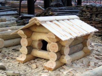 Самым распространённым и комфортным для животных материалом является дерево. К тому же выбор его весьма разнообразен. В ход может пойти точно такой же материал, как и для строительства дома для человека.
