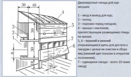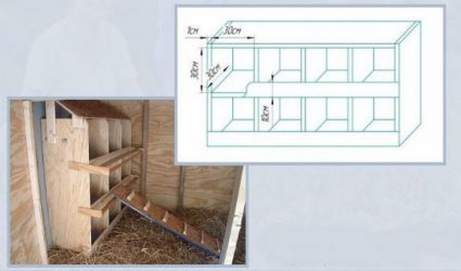 - Количество гнезд рассчитывается по общему числу птиц – на 5 несушек должно приходиться одно гнездо.