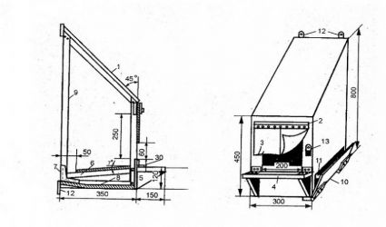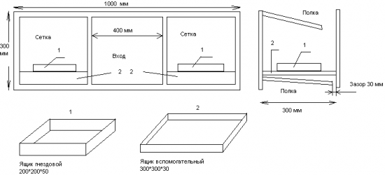 На первом рисунке показано двустороннее гнездо, которое можно расположить по центру курятника.