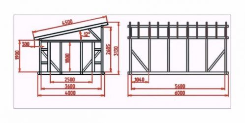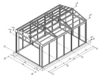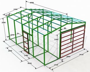 В качестве основы можете выбрать подходящий проект сарая из профильной трубы с размерами из предложенных ниже вариантов.