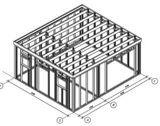 - Следующее достоинство касается всех каркасных конструкций. Мастера могут собирать из деталей строения разной сложности. Легко увеличить размеры, установить перегородки, добавить окна и двери.