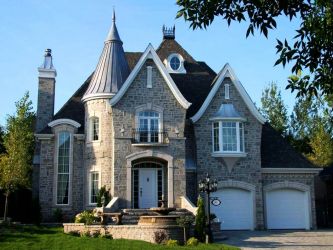 Как видите, для воплощения замкового стиля совсем не обязательно делать стены из камня. Это может быть обычный каркасный дом, которому всего лишь придаётся соответствующая стилю форма. И уж конечно, такой дом можно построить из кирпича или бетонных блоков, которые сегодня активно используются в малоэтажном строительстве.