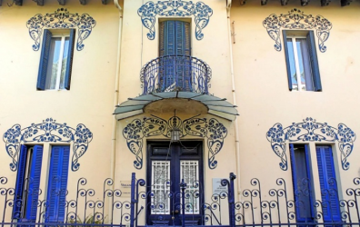 - Жаркий климат и близость моря влияет на палитру, в которой оформляются и фасады, и интерьеры. Это все оттенки белого и жёлтого, бежевый, голубой и сиреневый. Для облицовки стен используют дикий или формованный камень, декоративные штукатурки, натуральную доску.