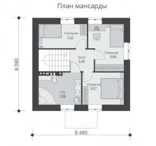 Вернуться к оглавлениюПланировка дома 8×9 с мансардой