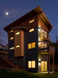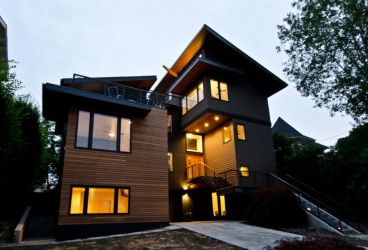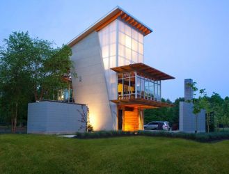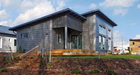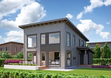 Такой дом собирается, словно конструктор, из больших щитов, представляющих собой многослойные панели. Для жилых домов используются СИП-панели.