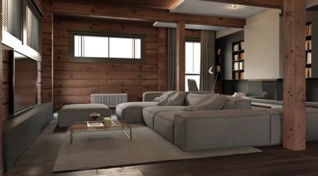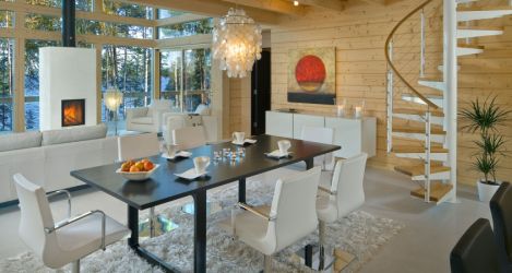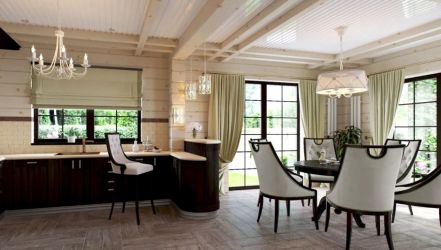 Если учесть, что дома из клеёного бруса (как и из панелей СИП) не подвержены усадке, о дизайне интерьеров можно подумать сразу после постройки дома и окончанию отделки фасада.