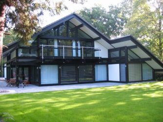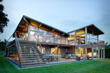 Сегодня каркас такого дома может быть сделан из металла, а стены заполнены стеклом. Главное, что сохраняется общий принцип, и основные черты стиля.