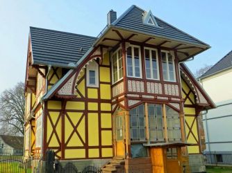 Немцы известны своей педантичностью и дисциплинированностью. Эти же черты передались их национальному стилю фахверк. Фасад в немецком стиле сделать просто, для этого не нужны специфические материалы, достаточно приколотить в определенном порядке несколько досок и выкрасить все в соответствующие цвета.