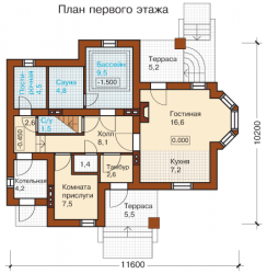 - Используется много световой техники для правильной подсветки дома в ночное время.