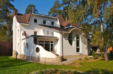 - Обязательна красивая растительность вокруг дома – клумбы также делаются скругленной формы.