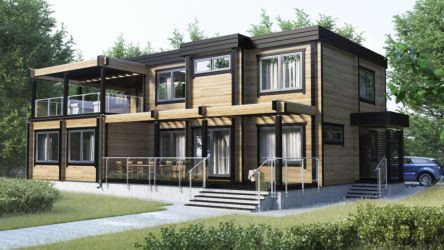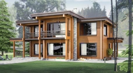 Деревянные дома делаются из клееной древесины одно- и двухэтажными.