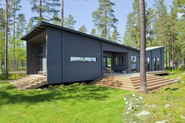 Еще один представитель больших строений. В таком доме имеется 4 спальни, хорошая терраса, стоянка для автомобиля и парная.