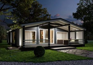 Внешне он выглядит, как небольшой дачный домик, но его внутреннее устройство функционально, хотя и рассчитано на проживание семьи на 2 человека.