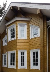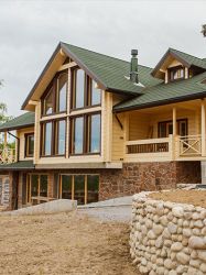 Клееный брус обладает расширенными архитектурными возможностями. В строениях можно делать большие оконные проемы, длинные пролеты и включать гнутые формы.