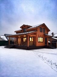 Это полутораэтажный дом с мансардой общей площадью в 215 квадратных метров. Жилая площадь составляет 140 м2.