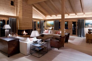 Стиль шале любит сочетания разных природных материалов – того же бруса и натурального камня. Сам дом выглядит как классическое строение родом из баварских Альп.