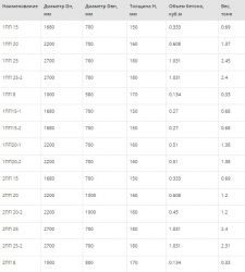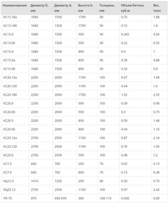 Размеры крышек для бетонных колец: