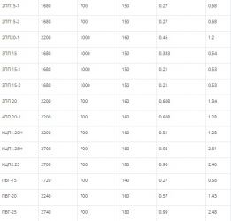 У некоторых изделий значения немного округлены.