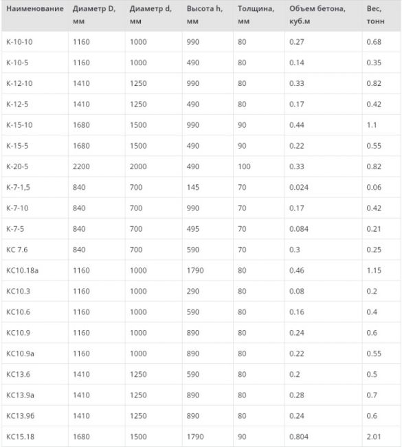Цифровая маркировка разделена на 2 части и пишется через дефис. Например, 10-8, где 10 – это внутренний диаметр бетонных колец для канализации (в данном случае 100 см), а 8 – это высота (80 см).