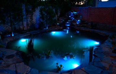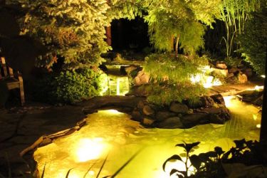 Красота пруда во многом достигается за счет его формы, размера, чистоты воды, рассаженных по периметру растений, фонтанов, водопадов и различного декора. Но гораздо важнее, как все это обилие подсвечивается. Декоративная подсветка для пруда поможет достичь визуальных эффектов, которые создадут вокруг водоема необычную атмосферу. С ее помощью любоваться ландшафтом сада можно даже по ночам.