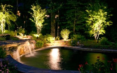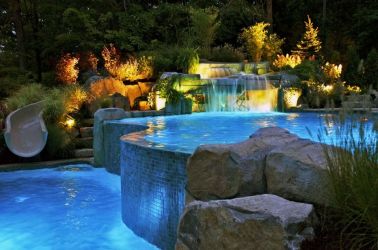 В этой главе предлагаем посмотреть красивые фотографии, чтобы оценить интересные дизайнерские решения при подсветке садовых прудов и бассейнов.